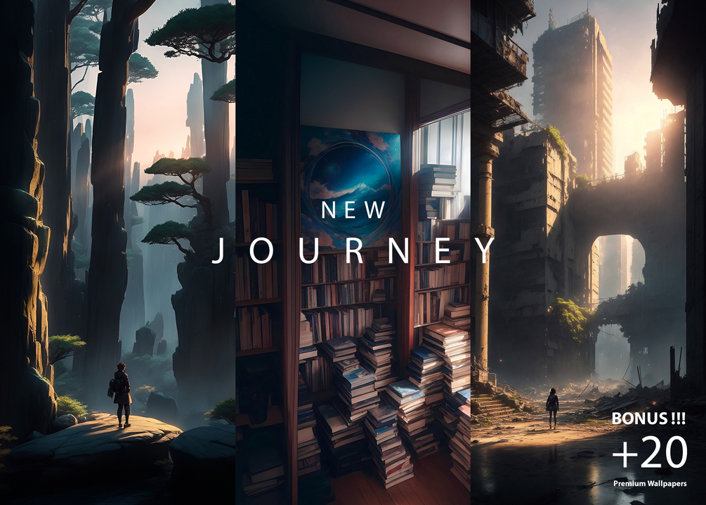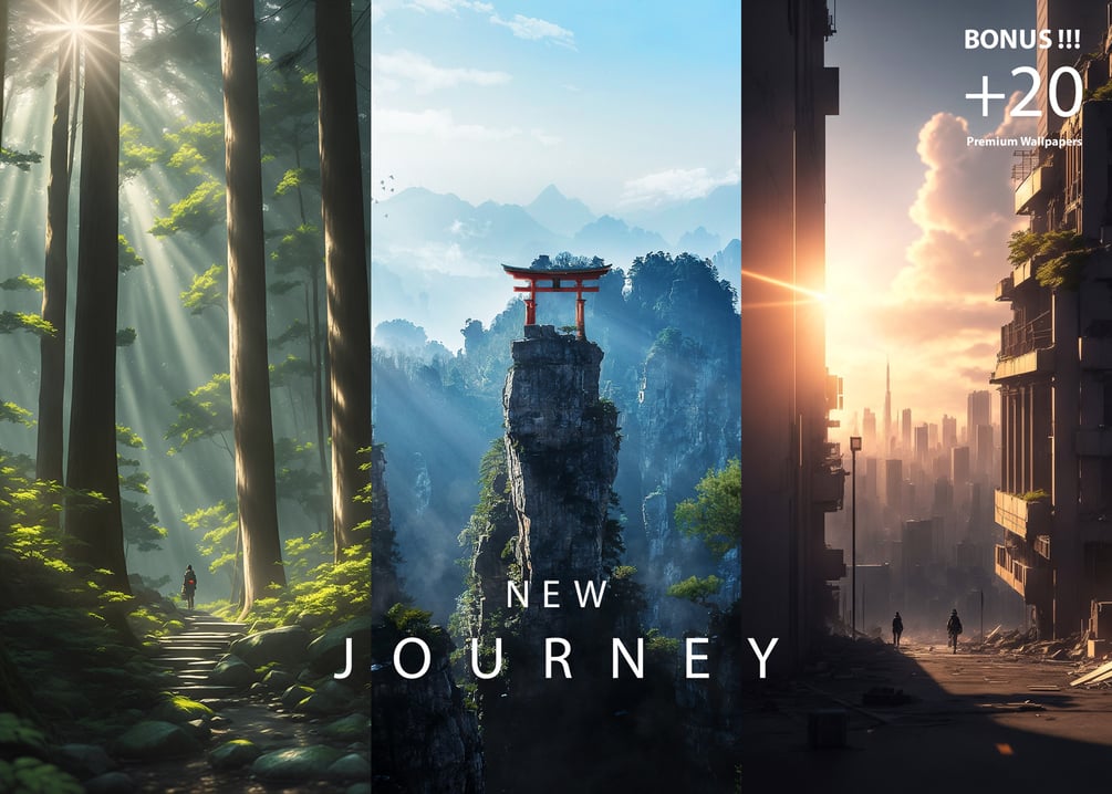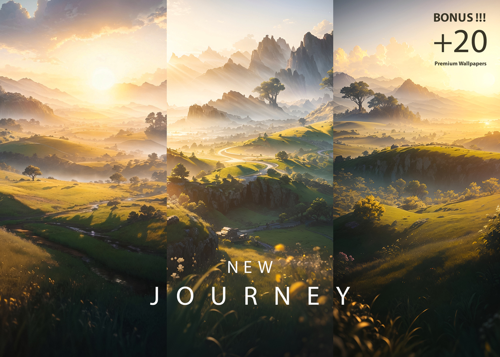The New Journey Collection includes 4 main wallpapers: 3 for your phone and 1 for your desktop. But that's not all! As a bonus, you'll also receive 20 additional phone wallpapers and 7 extra desktop wallpapers, making a total of over 27 stunning images to adorn your screens.